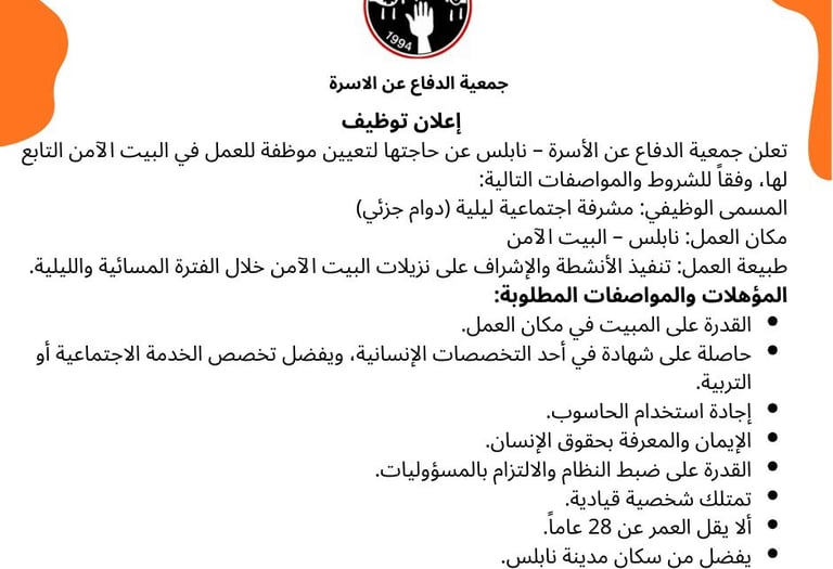 نظّمت جمعية الدفاع عن الأسرة يوم الأحد 21/12/2025 مناظرة شبابية في جامعة النجاح الوطنية، بمشاركة فاعلة من طلبة الجامعة، وذلك ضمن فعاليات حملة الـ16 يومًا لمناهضة العنف القائم على النوع الاجتماعي، وختامًا لمشروع نفذته الجمعية بالشراكة مع جمعية الإغاثة الطبية الفلسطينية وبدعم من صندوق الأمم المتحدة للسكان (UNFPA).