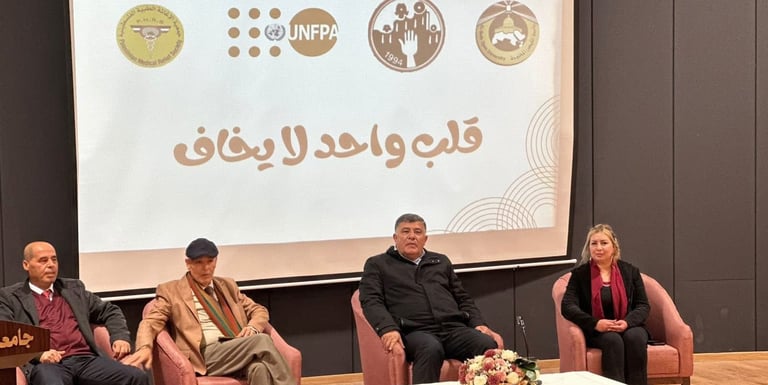 بالتزامن مع حملة الـ16 يومًا لمناهضة العنف ضد المرأة، عُقد اليوم لقاء حواري بعنوان «قلب واحد لا يخاف»، وذلك في إطار اختتام مشروع نفّذته جمعية الدفاع عن الأسرة بالشراكة مع جمعية الإغاثة الطبية الفلسطينية، وبدعم وتمويل من صندوق الأمم المتحدة للسكان (UNFPA).